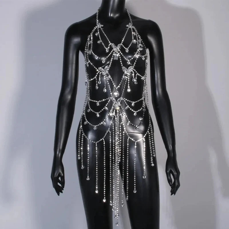 Fringed Butterfly Skirt Top Women Bra Jewelry Dress Rhinestone New Summer Pendant Bathing Sexy Bodysuit Panties Swim Bikini 2024